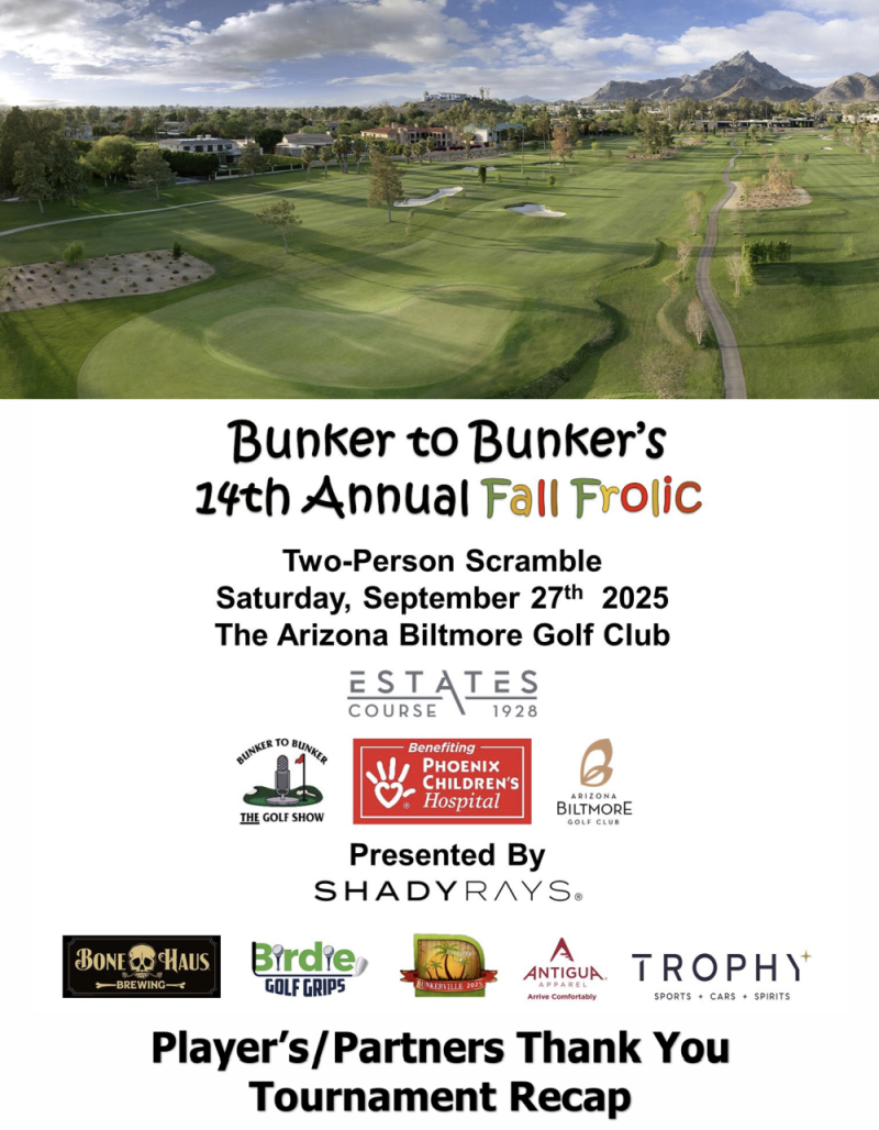 Bunker to Bunker The Golf Show, Arizona’s #1 golf show on radio for over 30+ years, hosts the popular “Bunkerville” Two- Person Scramble tournament series Presented by SHADY RAYS SUNGLASSES at a number of the best facilities in Arizona.