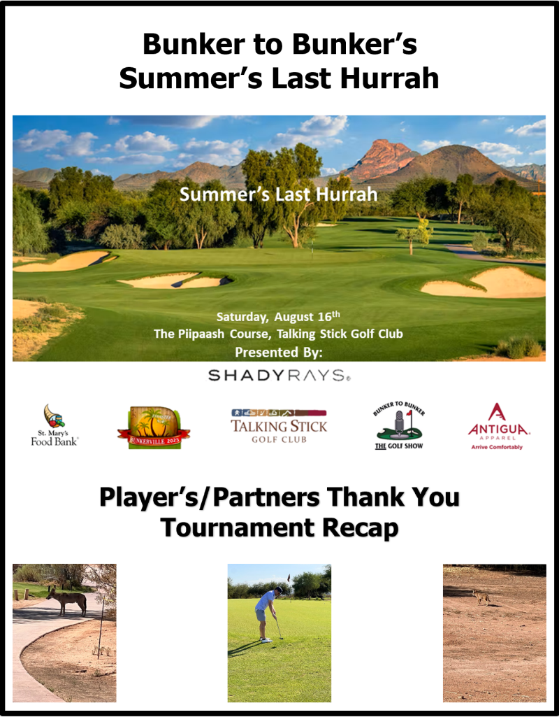 Bunker to Bunker The Golf Show, Arizona’s #1 golf show on radio for over 30+ years, hosts the popular “Bunkerville” Two- Person Scramble tournament series Presented by SHADY RAYS SUNGLASSES at a number of the best facilities in Arizona.