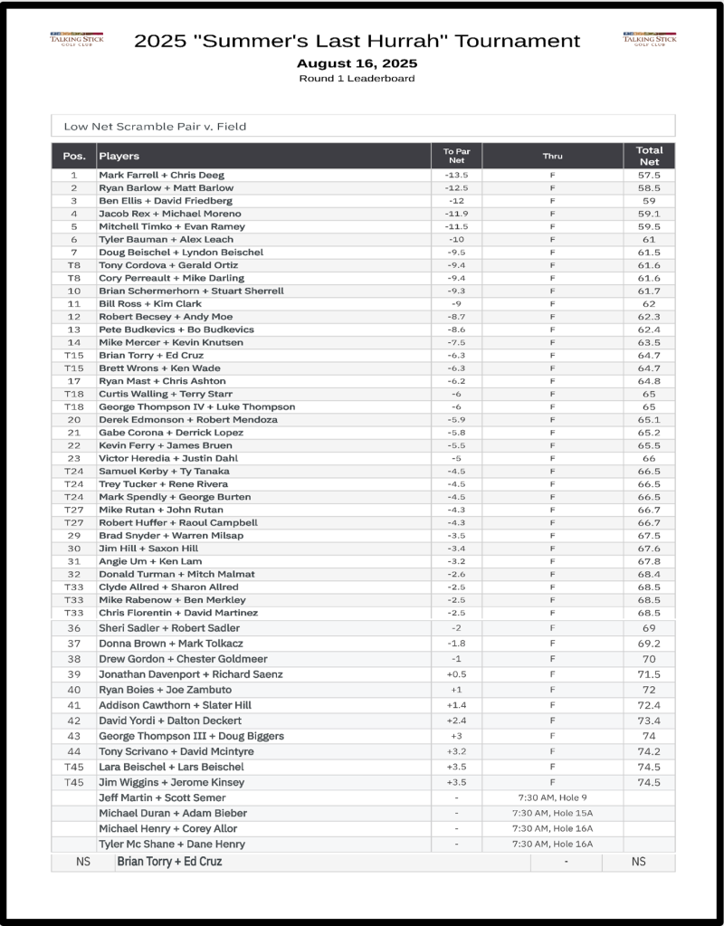 - August 16, 2025 Tournament Recap | Talking Stick Golf Club